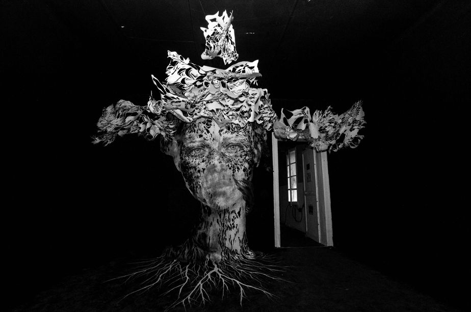 Pour cet événement, j'ai voulu exprimer la beauté des paysages qui entoure l'événement. Le papier découpé de façon organique fait écho à l'environnement, par nature fragile, il évoque également la vulnérabilité des eco-sytèmes face aux actions de l'homme sur la nature. Une volonté également de questionner le lien que nous entretenons avec lui et son importance pour rééquilibrer cet ensemble dont nous faisons partie.